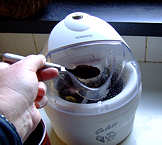 | If you do not have a machine, add the teaspoonful of ground coffee to the chilled mixture, stir well, then freeze. If possible, use a metal bowl as the mixture will freeze quicker. Remove the bowl from the freezer once every hour and whisk the mixture to prevent ice-crystals forming. You will probably need to do this about 5-6 times. This works nearly as well as using a machine but you've got to remember to whisk it! | |